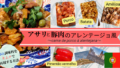 ポルトガル名物「アサリと豚肉のアレンテージョ風」を日本の食材で再現。現地調味料Massa de pimentãoはキムチのもと+赤パプリカで代用。海外料理が家庭で楽しめる一皿です。