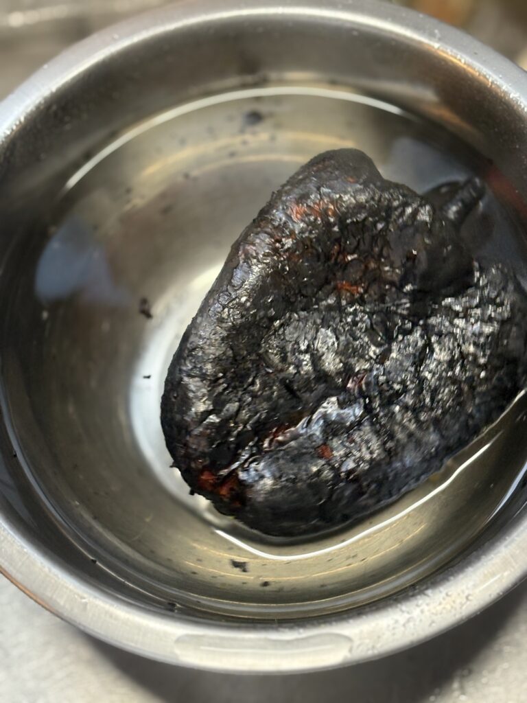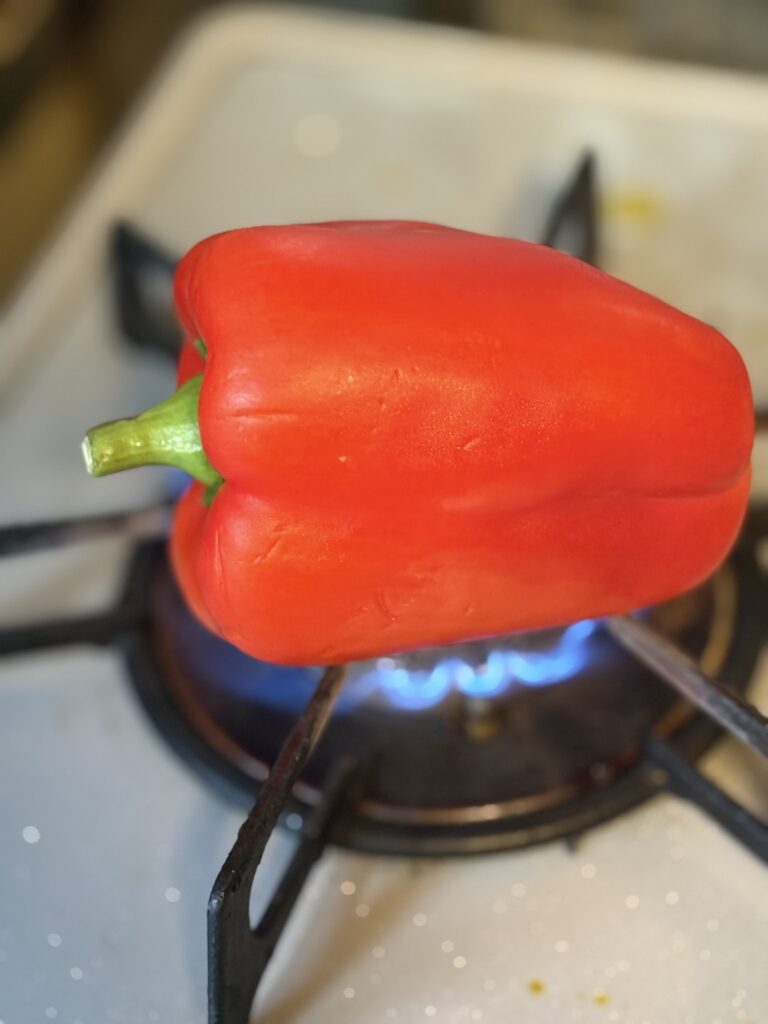 赤パプリカは直火で皮をしっかり焦がしてから皮をむくのがポイント。