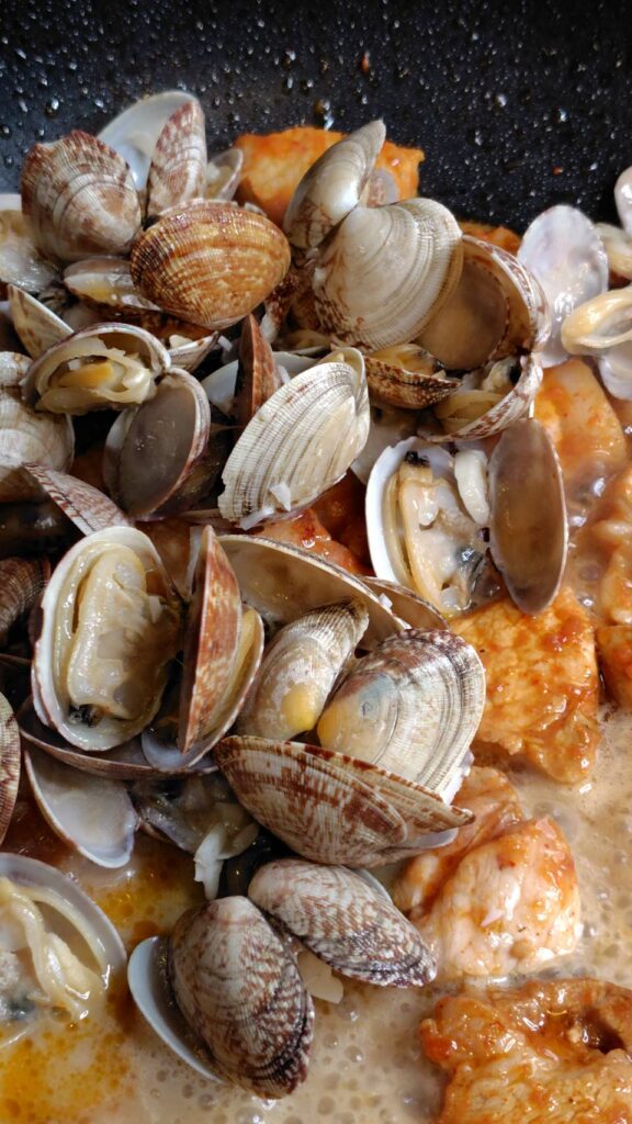アサリと豚肉のアレンテージョ風は、ポルトガルを代表する家庭料理。
