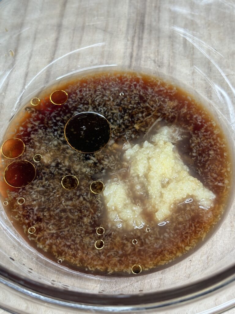 ①タレの材料を全て混ぜ合わせます。