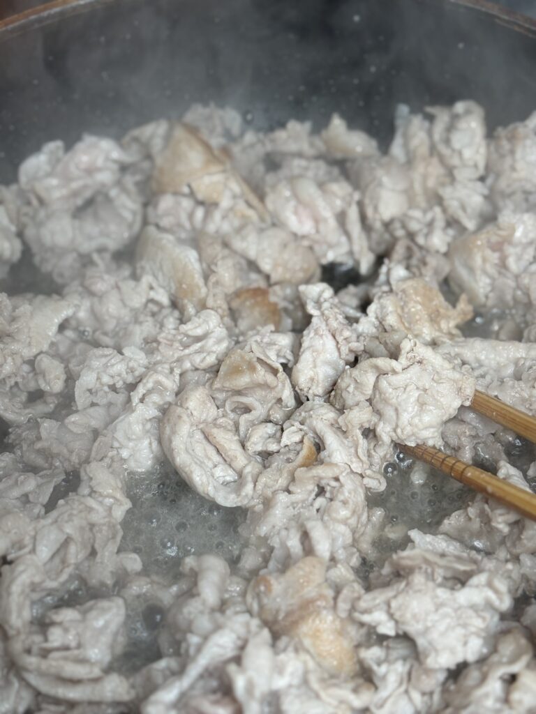 →豚肉は火を入れすぎると固くなります。