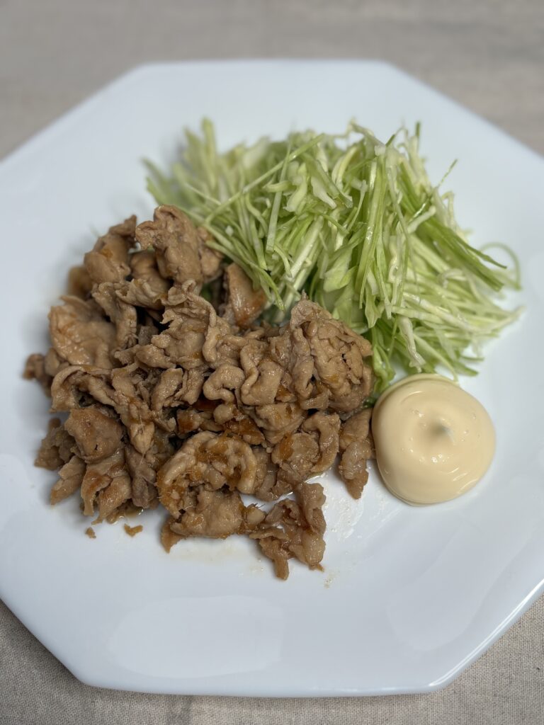 千切りキャベツ+マヨネーズを添えるだけで立派な定食メニューになります。