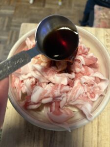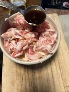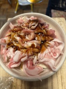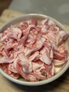 ※ 豚肉は過熱が甘いとおなかを壊してしまいますので、レンジの時間にこだわらず、目視して必ず肉には火を通してください。