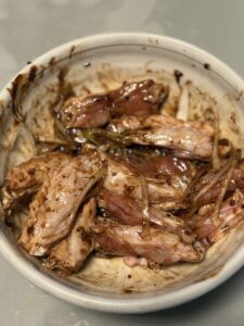 ①手羽中に味を絡める
