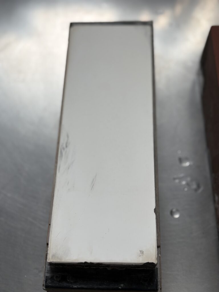 大きな刃こぼれの修正は荒砥石が必要ですが、普段の家庭料理でそこまでひどい状態になることはほとんどありません。#1000があれば、少しの刃こぼれも修正でき、十分切れると感じられる刃が付きます。